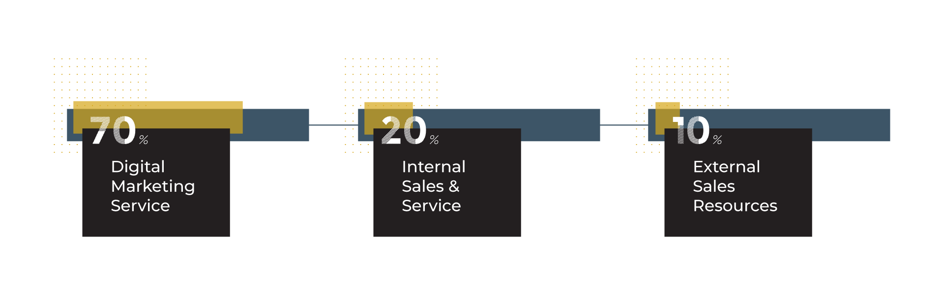 It is a bold statement to suggest that the lack of being digital is what holds back an organizations' success and sustainability, however, it is a frank observation that only a few brands embrace. Progressive brands have recognized that they must increase their investments in digital as the means to deliver an impactful experience. When considering how best to allocate growth investments, we believe that organizations should divide their budgeting into three streams; digital marketing service, internal sales & service and external sales resources.